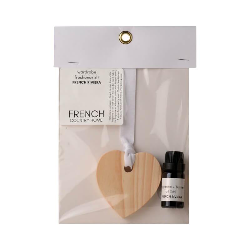 Add subtle luxury to your wardrobe with the French Country Home Wooden Heart Wardrobe Freshener Kit. This wooden heart slowly releases a refined scent that keeps your clothes smelling freshly laundered and softly perfumed.